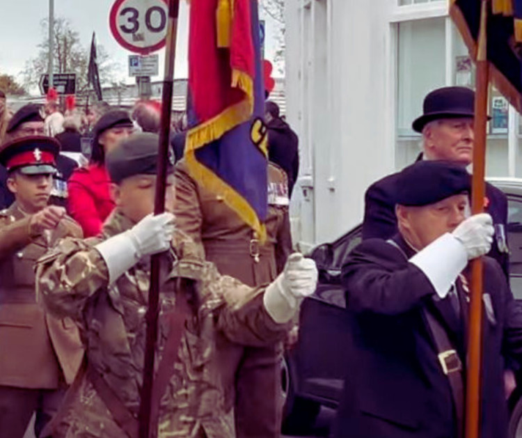 The sound of boots on tarmac echoed down the High Street as the procession came to a halt before the memorial. Reverend Jonathan Hunter-Dunn, Honorary Branch Chaplain, led the multi-faith service — his words carrying across the crowd as wreaths were laid by representatives of schools, community organisations, and emergency services.